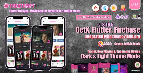 Theaterify – Flutter Film Apps, for Film Lover, Trailer, Now Taking part in & Upcoming Films, TV Present and the most recent film. Admob Google Applied, Bonus WebLanding Web page HTML