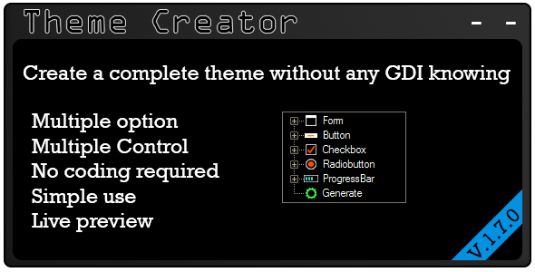 Theme creator allow you to to create an entire theme for .Internet whitout any realizing of GDI (no coding required)