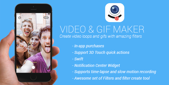 The app is a Common (iOS 10+) App Template (Swift) so that you can construct your subsequent excellent GIF and Video loop app, filled with options and sharing choices, together with reside filter rendering, timelapse recording mode, sluggish movement recording mode, digital camera timer. Utilizing this new venture you’ll submit your reskined app to the App Retailer lots simpler. A instrument to create new filter is included within the zip. Utilizing this App Template, you’ll be able to submit your app to the App Retailer in lower than few hours!