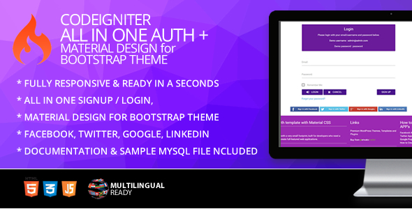 CodeIgniter ion-auth Template With Materials Design for Bootstrap Theme CodeIgniter 3x