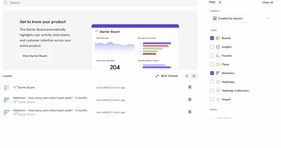 Studying curve for brand new customers. The dashboard is highly effective and visually interesting, however on the similar time, it might probably really feel overwhelming. Particularly when you’re utilizing it for the primary time, and even coping with analytics for the primary time. Constructing funnels, retention experiences, and cohorts takes a couple of tries to get proper. The entire course of simply isn’t as straightforward as it’s with an easier device, like Loopy Egg.