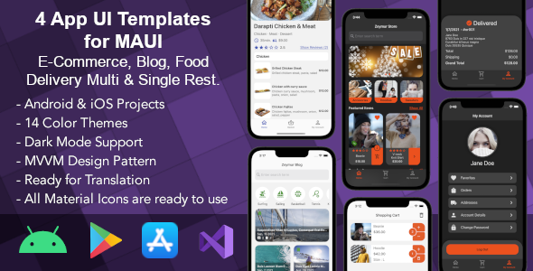 03/22/2024 - Xamarin.Kinds options eliminated. - MAUI options up to date to .Internet 8. 08/21/2022 - Meals Supply (Multi Restaurant) App for MAUI resolution has been added. - Meals Supply (Single Restaurant) App for MAUI resolution has been added. 08/17/2022 - Weblog App for MAUI resolution has been added. - Ecommerce App for MAUI has been added. 05/05/2022 - The goal framework of Android initiatives has been upgraded to Android 12. - The dependencies have been up to date. 01/29/2022 - Enhancements have been made for tablets. 12/10/2021 - Meals Supply (Single Restaurant) has been added. 12/02/2021 - Meals Supply (Multi Restaurant) has been added. 11/13/2021 - Weblog software has been added. 10/28/2021 - Preliminary launch with e-commerce app.