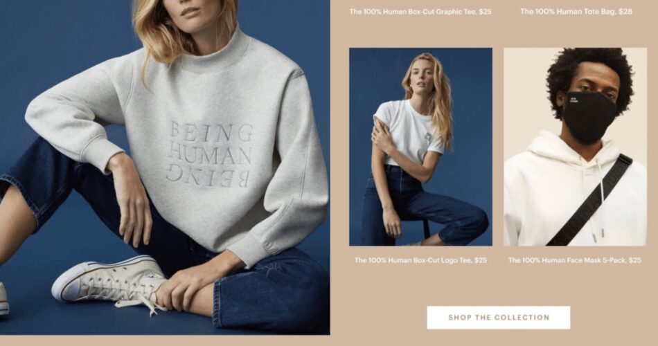 Everlane, a fashion ecommerce model, employs a peaceful, minimalist design that conveys its message clearly at a look by means of its headline, “Presents that give again.”