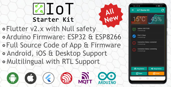 Flutter ESP8266 IoT Starter Equipment is a starter mission for freelancers, indie builders, hobbyists and professionals.
