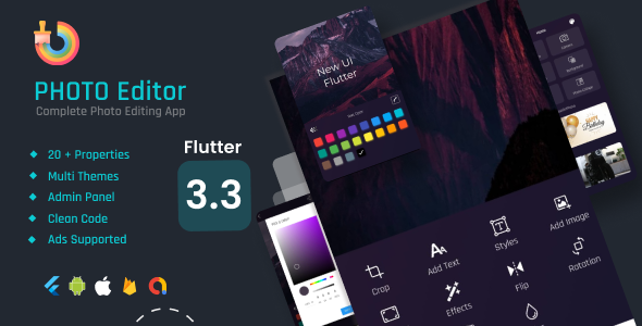 Photograph Editor app is developed in Flutter for each android and ios , it present person to beautify their pictures and likewise apply textual content and different styling on texts and likewise apply emoje and stickers as properly and it has admin panel as properly , and admin panel can be developed in Flutter Net , from admin panel admin can handel background photos stickers and pictures classes and likewise can see statistics as properly , and Photograph Editor app permit Consumer to Write Textual content on their picture and apply properties on it Like : Fonts , background colours , add multi photos , crop a picture , can apply stickers , frames and likewise apply results on picture to picture seems stunning , and it permits person to vary and apply multi themes to apps to look app UI stunning.