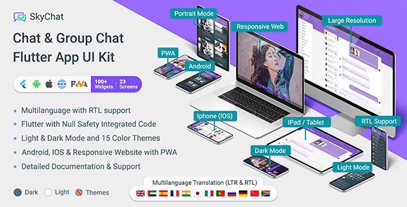 “SkyChat – Chat & Group Chat Flutter App” is a premium flutter app ui package. It’s a Flutter 2.0 model app.