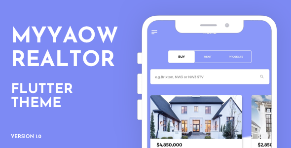 Myyaow Realtor is a Flutter Actual Property cellular App Theme, appropriate each in Android and IOS. The UI/UX elements are designed to personalize their purposes by saving the builders’ working hours and likewise scale back value. This Flutter theme permits buyer and brokers to work together and to achieve a win-win scenario in actual property enterprise, it permits brokers to put up properties and prospects to go looking by these properties based on their price range and required facilities