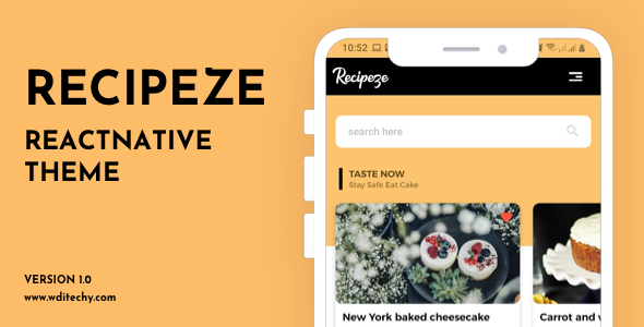 Recipeze is a React Native Recipe Managing Cellular Utility UI theme, appropriate for each IOS and Android, Responsive React Native design is an entire platform for Recipe makers,Discover checklist of recipe, Add your individual recipe, correspond together with your followers and have enjoyable