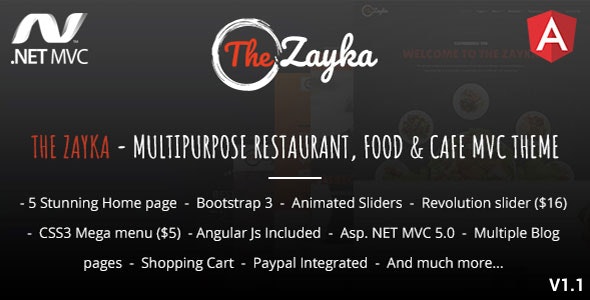 - Asp.Internet MVC: The Zayka is developed on MVC structure which makes it straightforward to customise and handle web site.