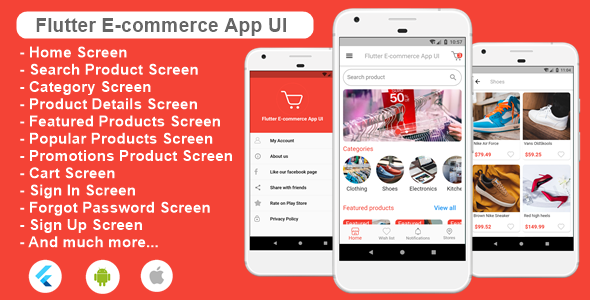 Flutter E-commerce App UI Template for Android and iOS will save your time to design your e-commerce app ui from scratch!