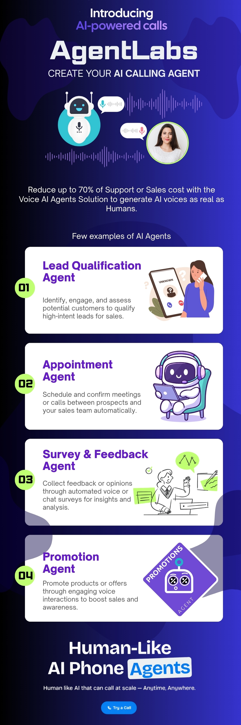AgentLabs is a cutting-edge, enterprise-grade bulk calling platform that mixes the ability of Twilio’s dependable telephony infrastructure with ElevenLabs’ ultra-realistic AI voice synthesis. Constructed for companies that have to scale their voice communications, AgentLabs lets you conduct hundreds of automated calls with pure, human-like conversations that have interaction and convert.