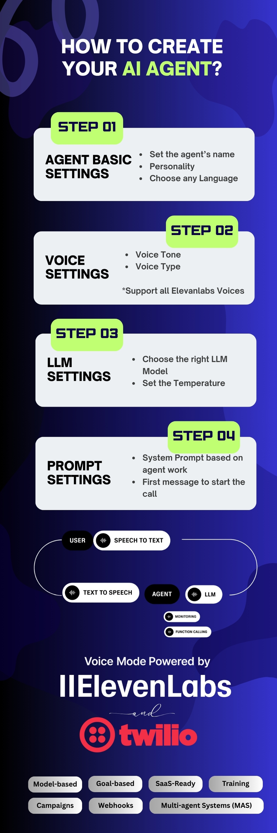 - AI Agent Builder – Configure customized voice brokers and personalities.