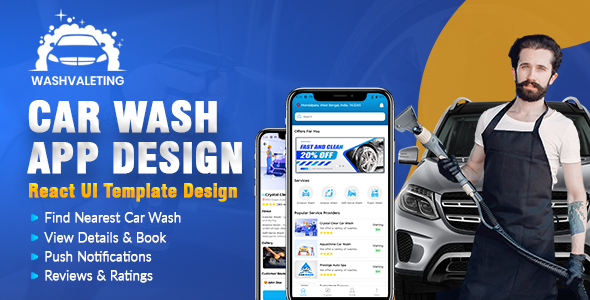 On Demand Automobile Wash Car Auto Detailing Cleansing Valeting Reserving Service Market App UI Theme