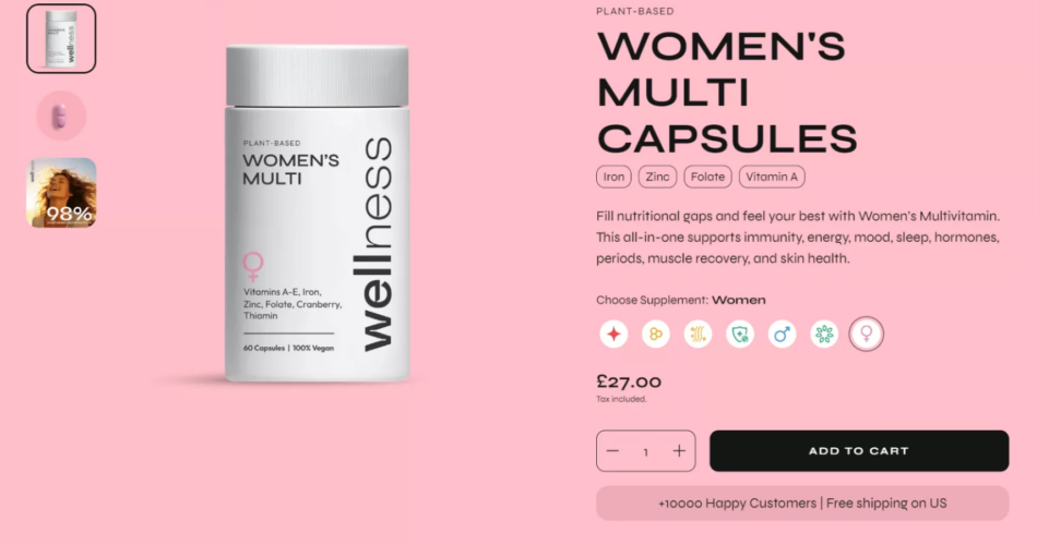 2. Web page format, resembling putting belief badges and refund data straight beneath your “BUY NOW” CTA button, letting prospects construct their very own containers on the product web page as an alternative of in an exterior app, and exhibiting social proof above the fold.