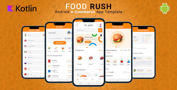 modern and fashionable interface, FoodRush is constructed with the newest Kotlin & XML,