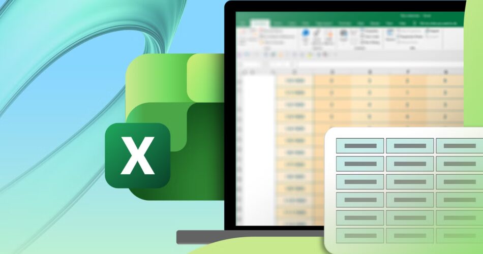 A hand holding a magnifying glass over the Excel logo, with spreadsheets and a green alarm clock in the background.