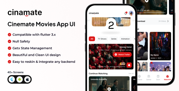Cinemate is a contemporary and feature-rich Flutter cellular app UI package designed for film streaming, TV exhibits, and leisure platforms. This package offers a smooth,gentle and dark-themed design with a user-friendly interface, making certain an attractive expertise for customers.