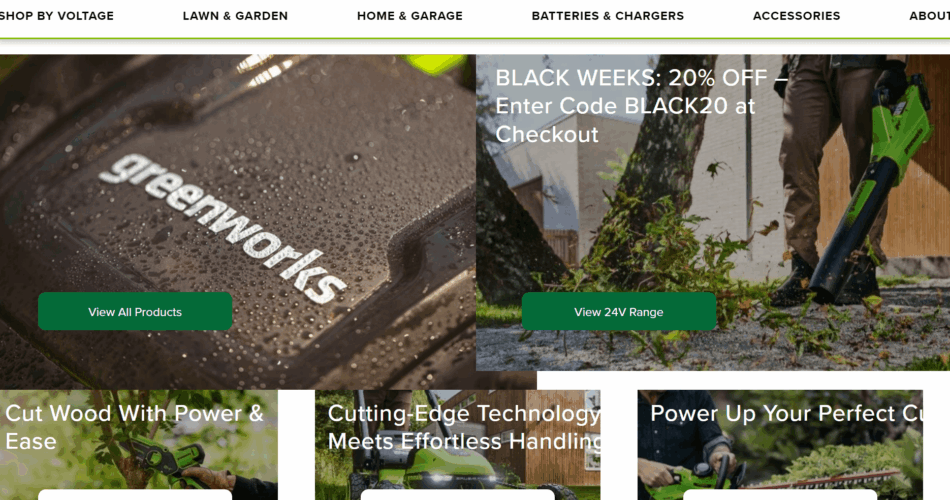 For instance, Greenworks Instruments sells {hardware} primarily for lawns and gardens, but additionally within the house and storage class, with its web site tailor-made to inexperienced thumbs: