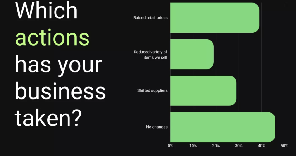 - Worth tags are shifting. 39% have raised retail costs due to tariffs, whereas 29% have switched suppliers and 19% have decreased the variety of merchandise they promote.