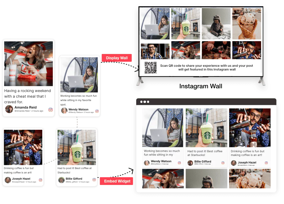 Most significantly, an Instagram wall is versatile. You possibly can embed Instagram wall widgets on web sites, display social media feed on occasion screens, flip them into shoppable galleries, or use them in product showcases.