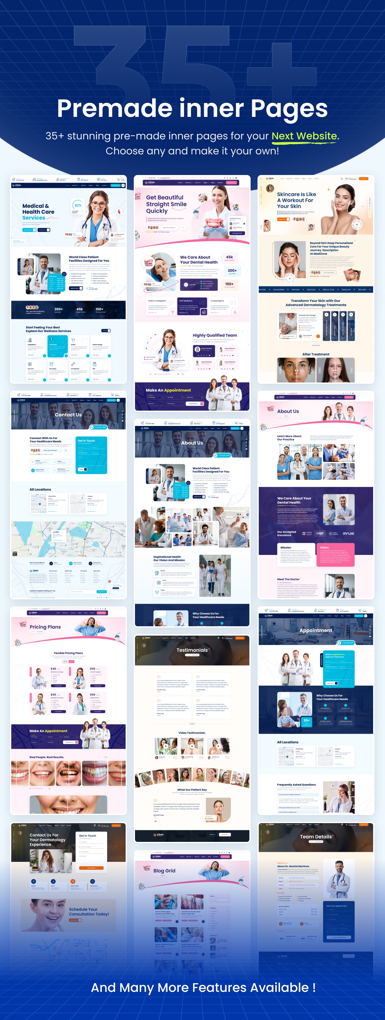 Launch your clinic or hospital web site immediately with professionally crafted demos, together with:
