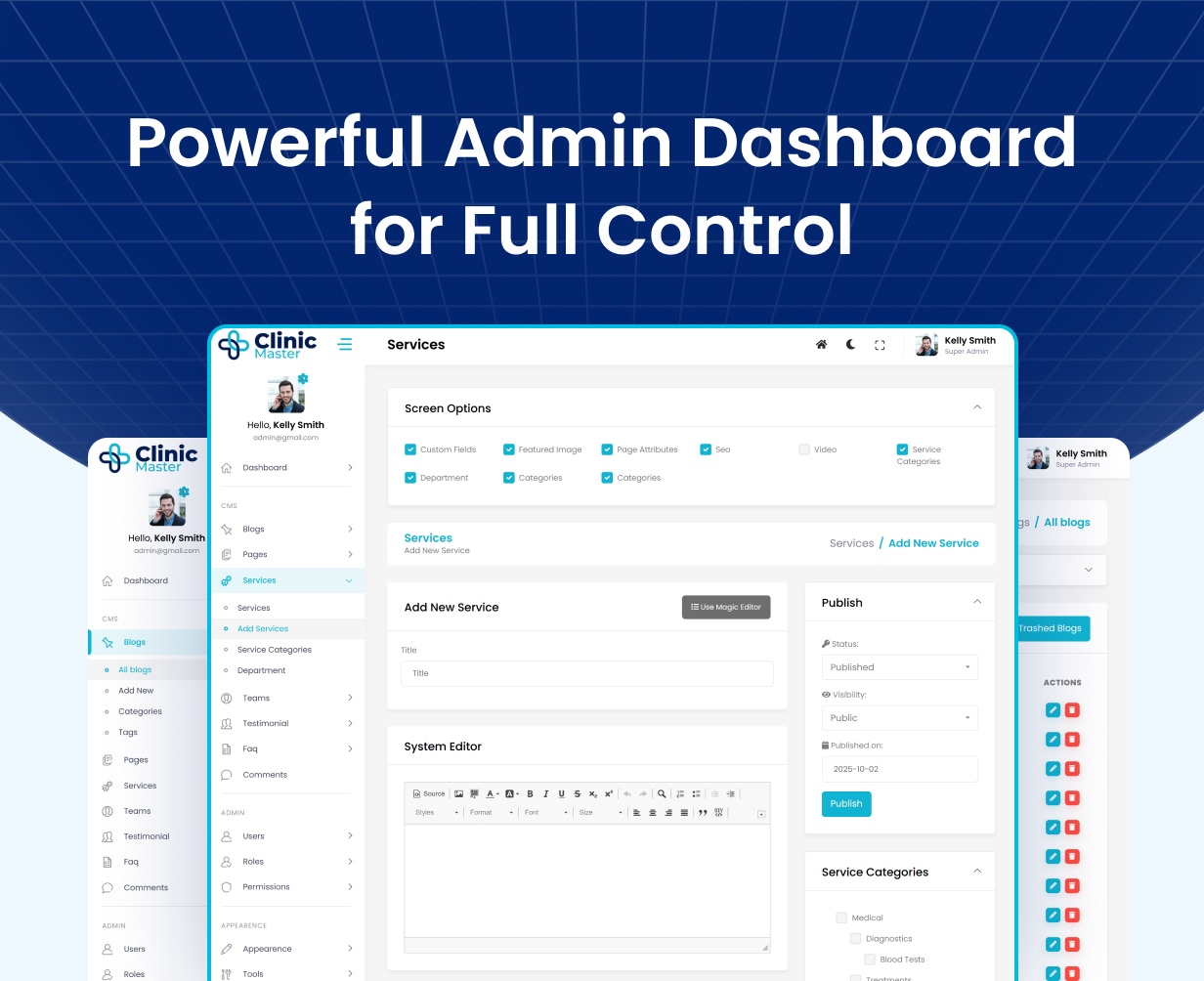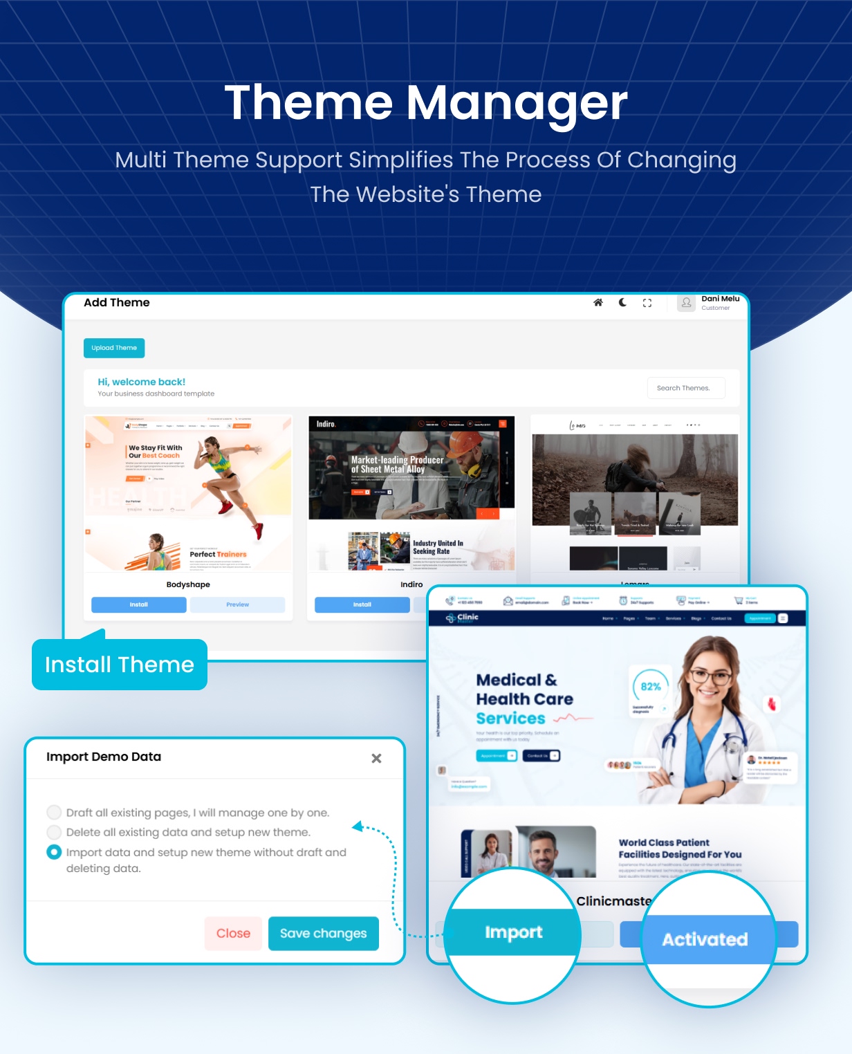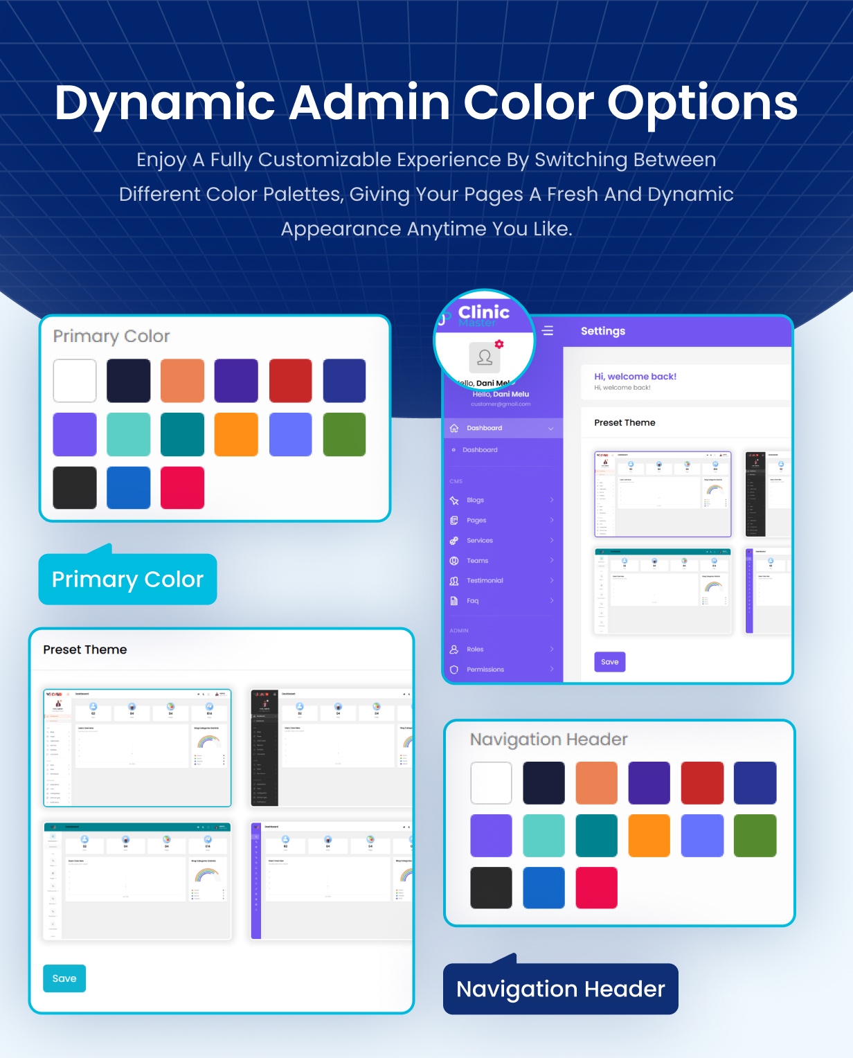 Ultimate for hospitals and clinics with docs, receptionists, content material groups and directors. - ✔ Theme Choices Panel
