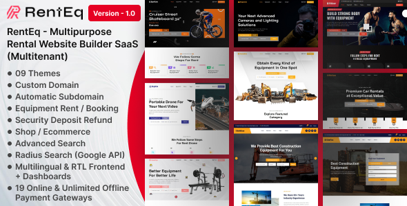 “RentEq” is a Multitenant Rental Web site (Ecommerce Included) Builder (SAAS) which gives 9 enticing themes for tenants