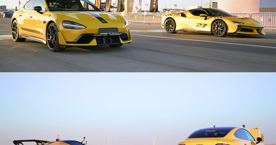 At a drag strip in Abu Dhabi, the Ferrari SF90 XX, with its 1,030 horsepower hybrid setup, goes head-to-head in opposition to the Xiaomi SU7 Extremely, which has 1,548 horsepower from three electrical motors. Sam is driving the Ferrari, and Mat Watson from CarWow is behind the wheel of the Xiaomi.