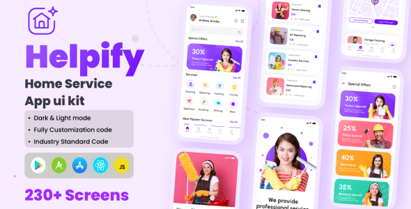 Helpify is a cutting-edge house service app constructed utilizing React Native CLI Ui