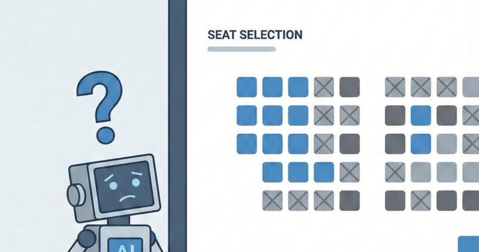 In line with Imas and Fradkin, AI brokers encounter basic obstacles when navigating human-optimized net interfaces. Seat choice techniques current specific challenges as a result of interactive components change state dynamically. Costs seem solely after clicking, availability updates repeatedly as different clients full purchases, and visible components reply to hover interactions that brokers battle to interpret accurately.