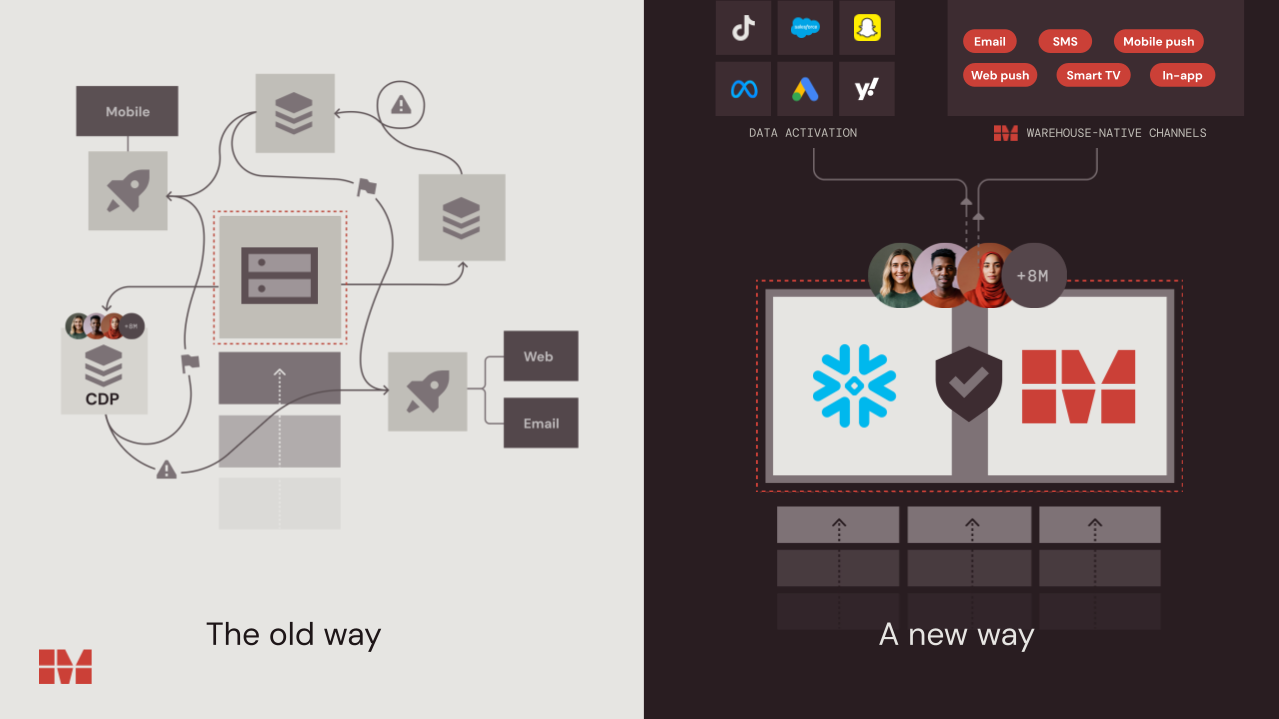 Most martech stacks weren’t designed to play good together with your information warehouse. Even with Snowflake as your central hub, your advertising instruments seemingly nonetheless depend on legacy processes – nightly ETL syncs, handbook exports, and a tangle of third-party connectors.
