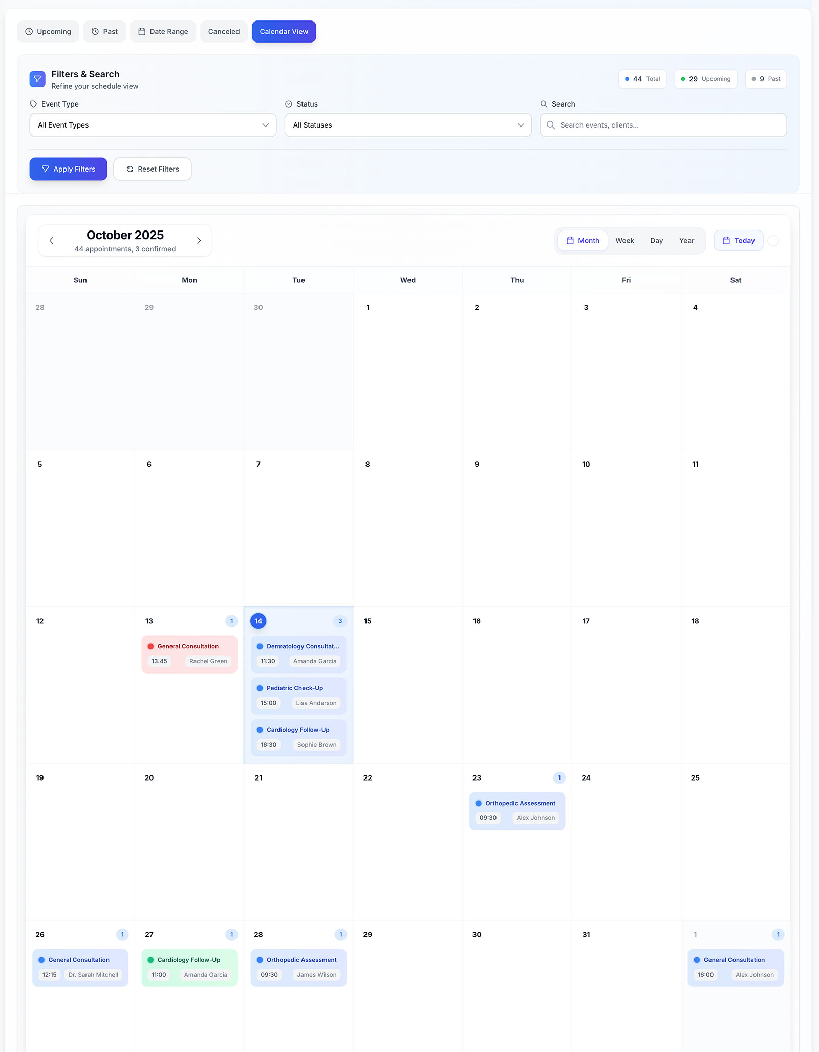 - Appointment Statistics: Monitor whole, upcoming, accomplished, and cancelled appointments.