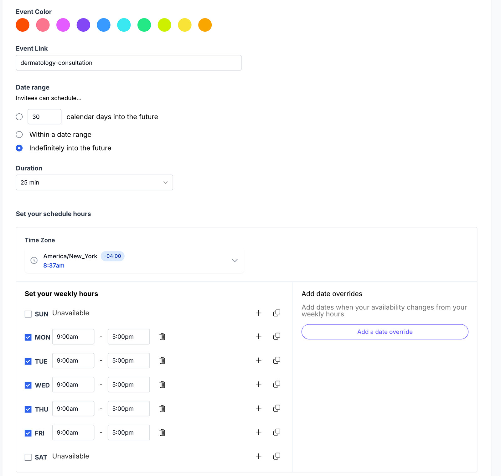 - Public Reserving Pages: Each person will get a private, shareable reserving web page (e.g., yoursite.com/u/your-name) that fantastically shows all their out there occasion sorts.