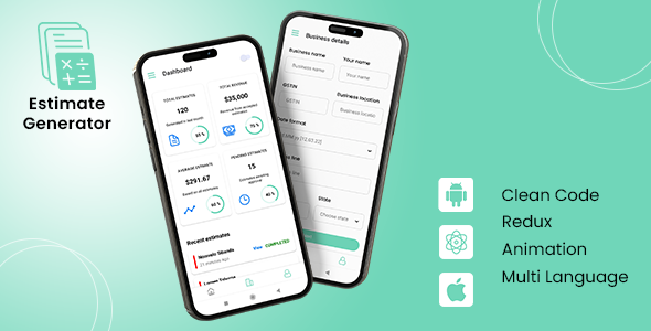 You may shortly set up this Estimate Generator Utility and see. An Estimate Generator App React Native iOS/Android App Template.