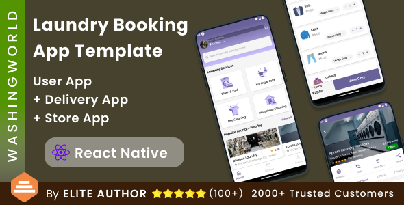 WashingWorld – Laundry Reserving App Template in React Native(Expo) | 3 Apps | Person App + Supply App + Retailer App