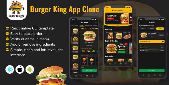 Rework your eating expertise with the SuperBurger app—an entire React Native CLI template designed for burger fans. With easy ordering, enhanced efficiency, and optimized transaction processes, this strong template aids builders in creating cross-platform apps for each Android and iOS.
