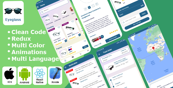 Eyeglasses is a React Native App template. This has been with React Native CLI. Eyeglasses UI is suitable with each Android and iOS. Code format is simple to make use of, clear and effectively formatted. You may shortly set up and verify our demo software.