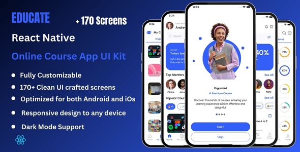 Educate Professional is a complete and feature-rich React Native UI Package Template designed