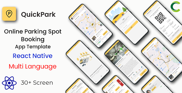 QuickPark – On-line Parking Slot Reserving App Template in React Native(Expo) | Multi Language