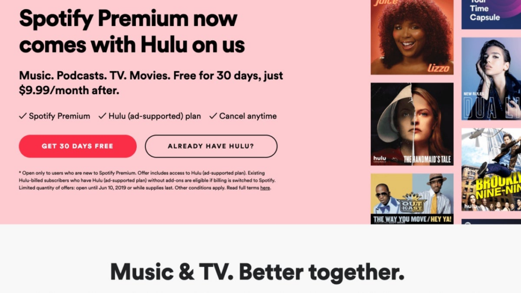 Spotify and Hulu have partnered to supply bundled subscriptions that mix music and video streaming providers at a reduced fee, offering a complete leisure package deal.