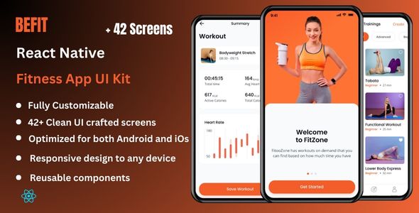 BeFit is a complete and feature-rich React Native UI Package Template designed