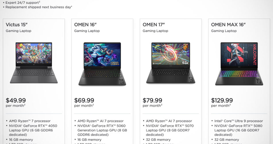 HP Omen Victus Gaming Laptop Subscription Service