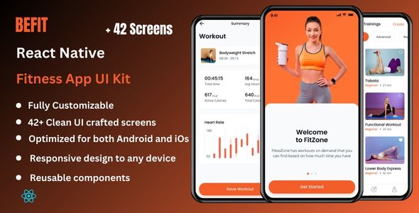 BeFit is a complete and feature-rich React Native UI Equipment Template designed