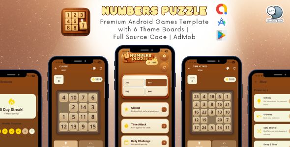 Premium sliding puzzle recreation • Picket UI • A number of modes • Energy-ups • Full AdMob monetization • 100% Kotlin + Jetpack Compose