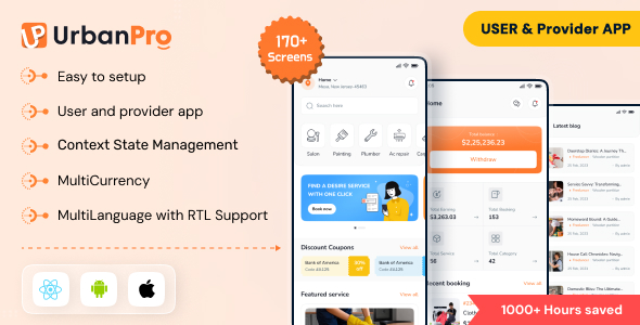 UrbanPro – On Demand Dwelling Service App | UrbanClap Clone | ReactNative UI Package Template
