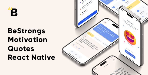 BeStrong is a React Native app “Template solely” that means that you can create a motivational quotes app with ease. You may customise the app with your personal quotes, classes, photographs, colours, fonts and extra. BeStrong additionally helps offline mode, push notifications, sharing, score and bookmarking options. With BeStrong, you’ll be able to encourage your customers to be robust and constructive day-after-day.