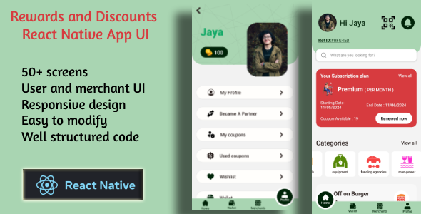 PromoCodeMaster is a contemporary, responsive, and feature-rich React Native UI template designed for platforms providing promo codes, offers, and reductions on numerous model services and products. This UI is constructed that can assist you kickstart your app growth for promo code marketplaces, providing a seamless consumer expertise for customers, retailers, and directors.