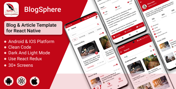 BlogSphere App is a React Native App Template. Constructed with React Native CLI, this template gives an intuitive and responsive UI, suitable with each Android and iOS platforms. The code construction is clear, well-organized, and straightforward to make use of, making it easy to customise and get began shortly.