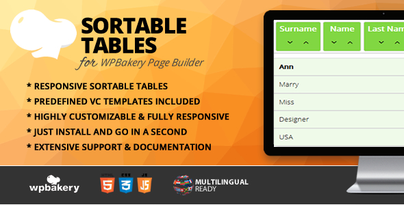 Sortable Tables Addon for WPBakery Web page Builder
