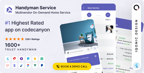 Launch your individual mobile-based on-line On Demand Dwelling Providers app with full resolution by utilizing Handyman Service cell app. The customizable templates of this superb app can shortly let builders to arrange a service reserving system to just accept bookings from shoppers from wherever in only some minutes. With prepared to make use of Register web page, Join pages, Cost strategies web page, Reserving lists, Service Kind demo, Handyman element web page, Coupon web page, and extra, this Handyman Service app permits enterprise to have an entire and operating reserving service system app very quickly.